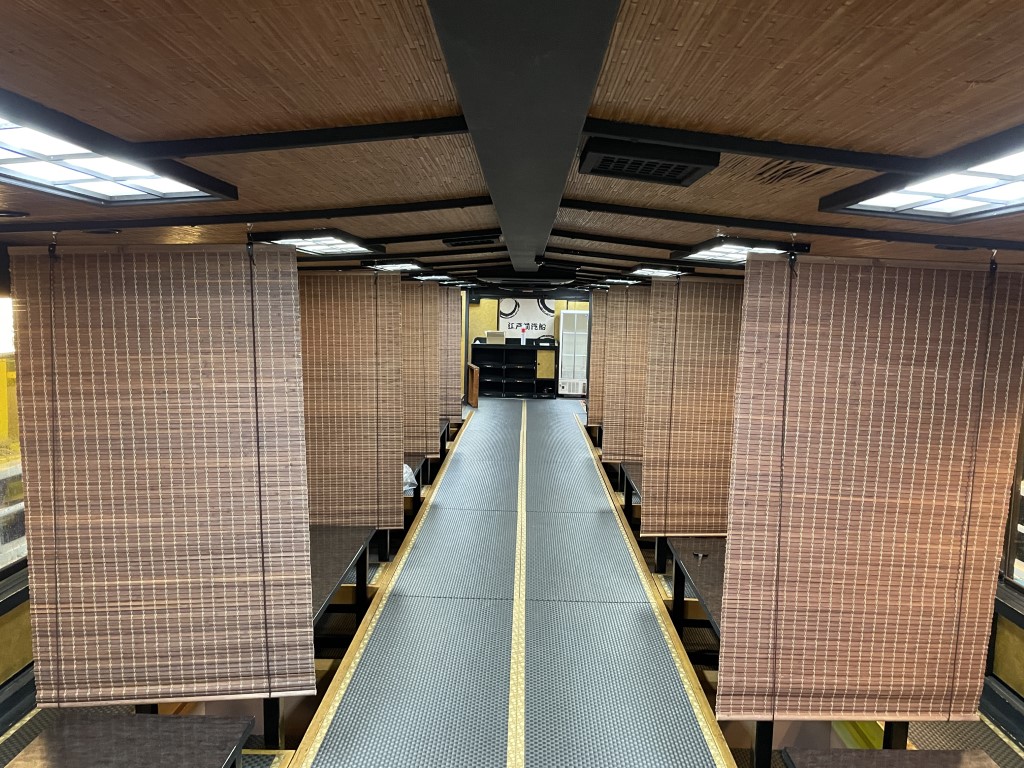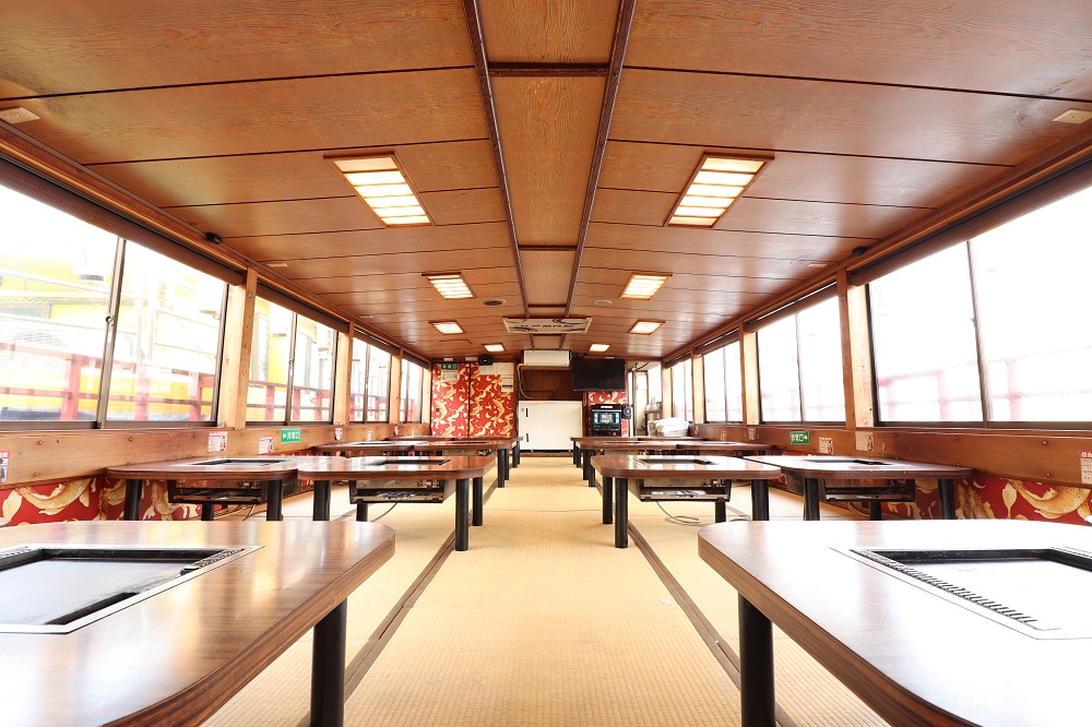 旅客最大定員65名様の船や展望デッキ付の船もご用意しているので、ゆったりと使えます。趣のある提灯や展示品の数々