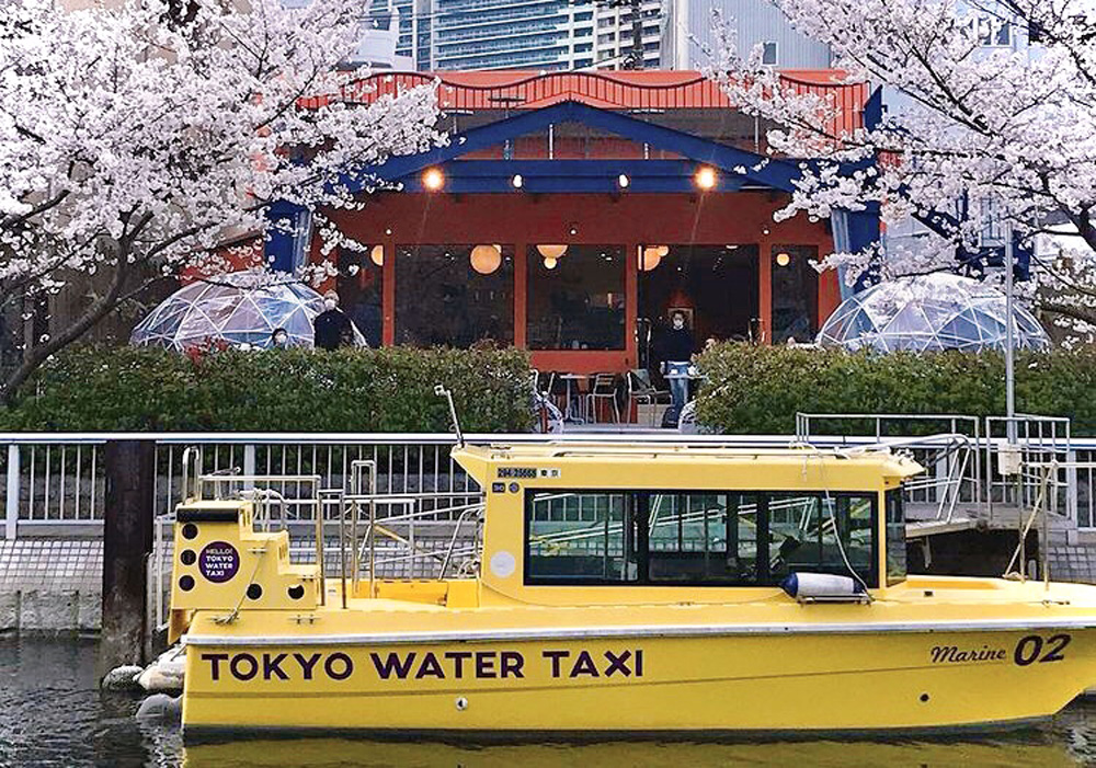 目の前には船着き場があり、黄色いお船(東京ウォータータクシー)でクルーズもできます。(乗船料は別途料金)