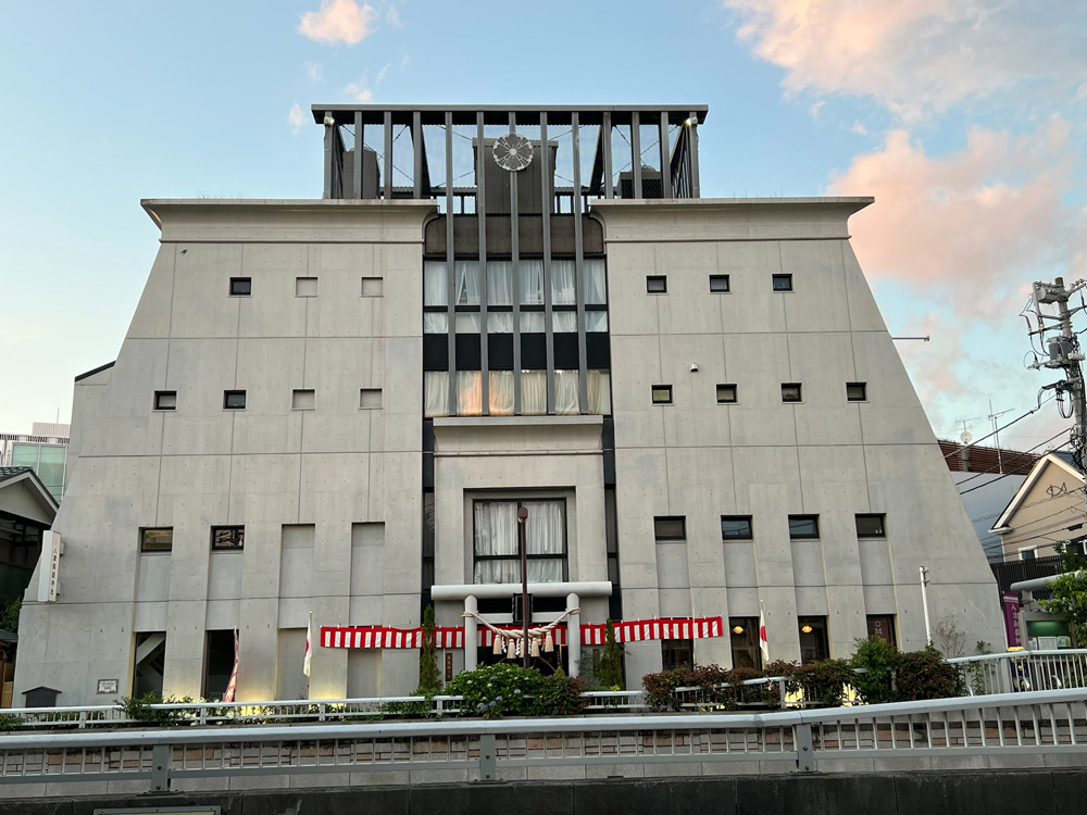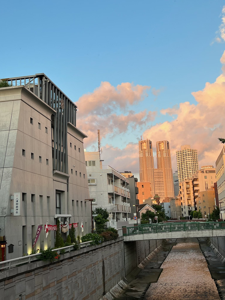 都庁を望む神田川のほとりにたたずむ美術館風の建物の神社です。内部には唯一神明造りの神殿、大床は大理石造りを始め日本神話のステンドガラスを壁面に飾り、みそぎのせせらぎが流れ又光り輝くクリスタルガラスのオブジェが置かれているロビーです。日本の伝統の美学の再発見を感じられるでしょう。