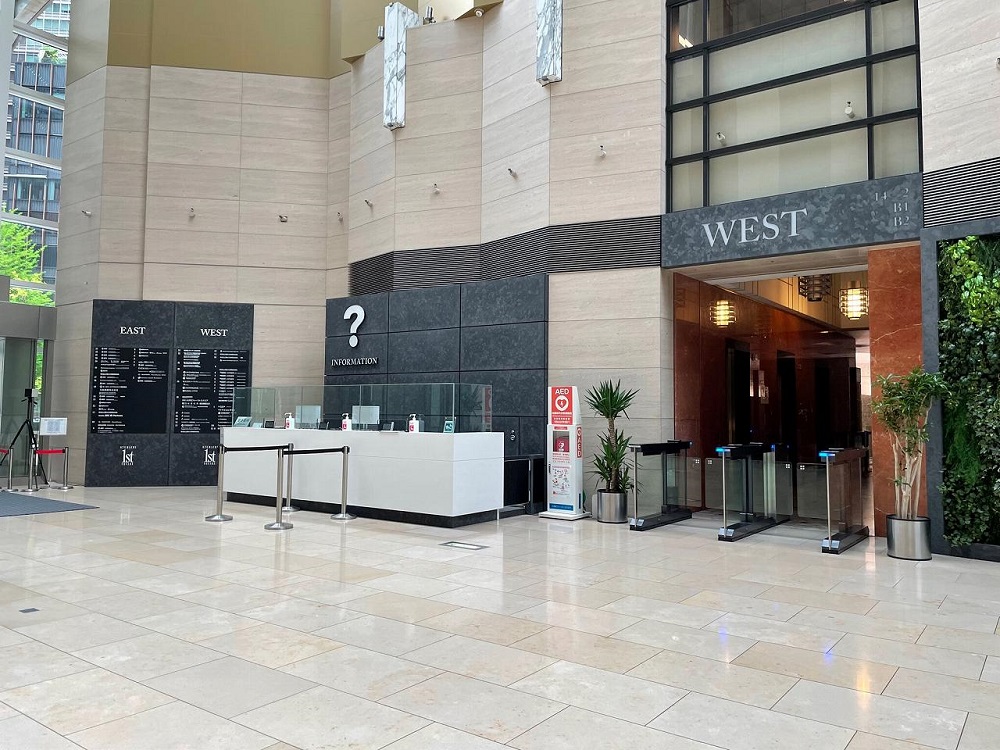 総合受付・WEST棟フラッパーゲート(ゲートはWEST・EAST棟それぞれ2箇所有)