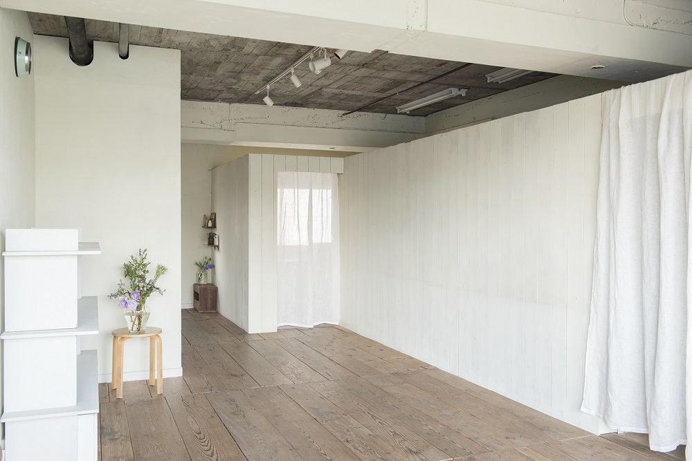 白壁と、古材を使った板張りの床に囲まれたぬくもりある空間には、