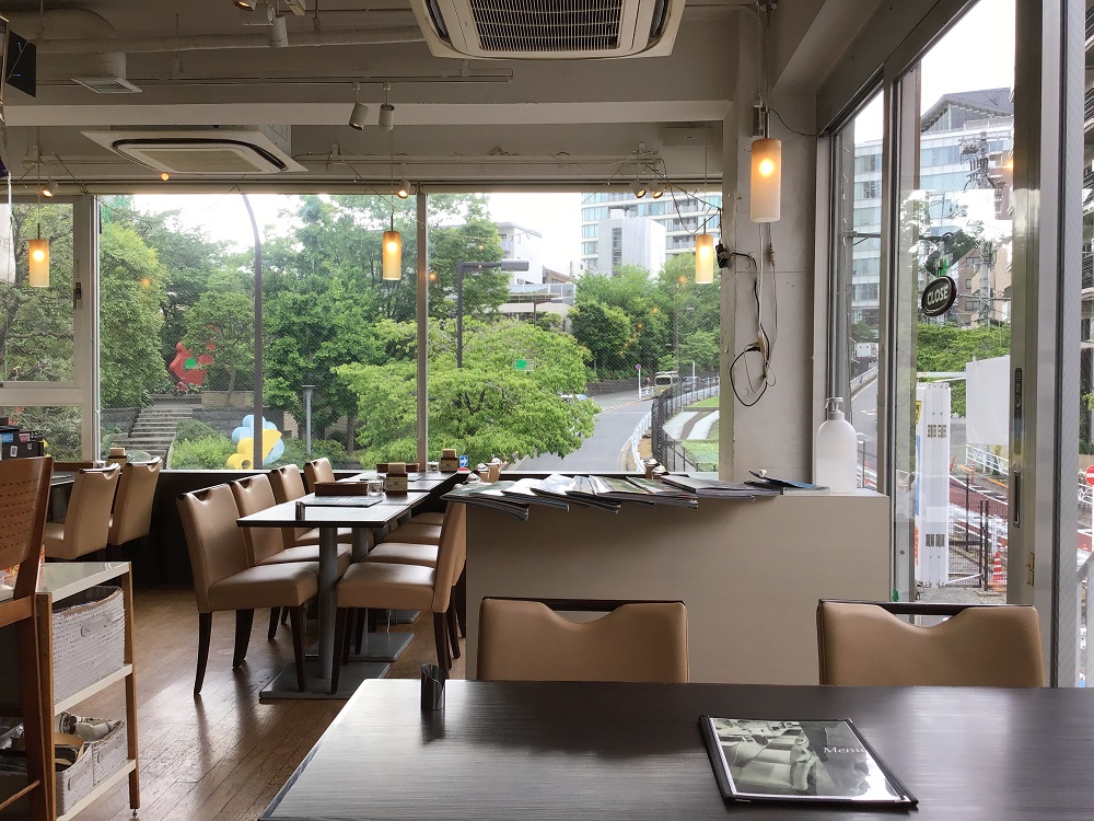 窓が大きく開放的な店内です。窓の外には代官山らしいお洒落な景色が広がります。