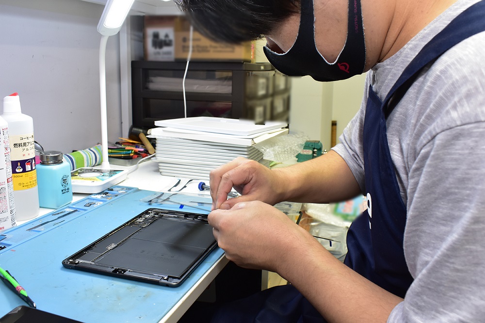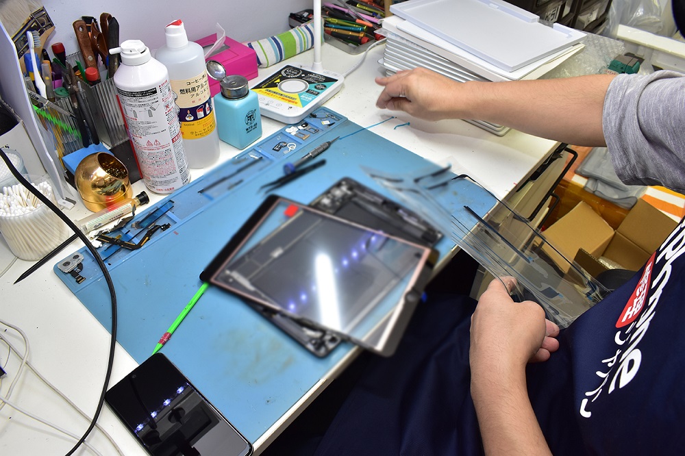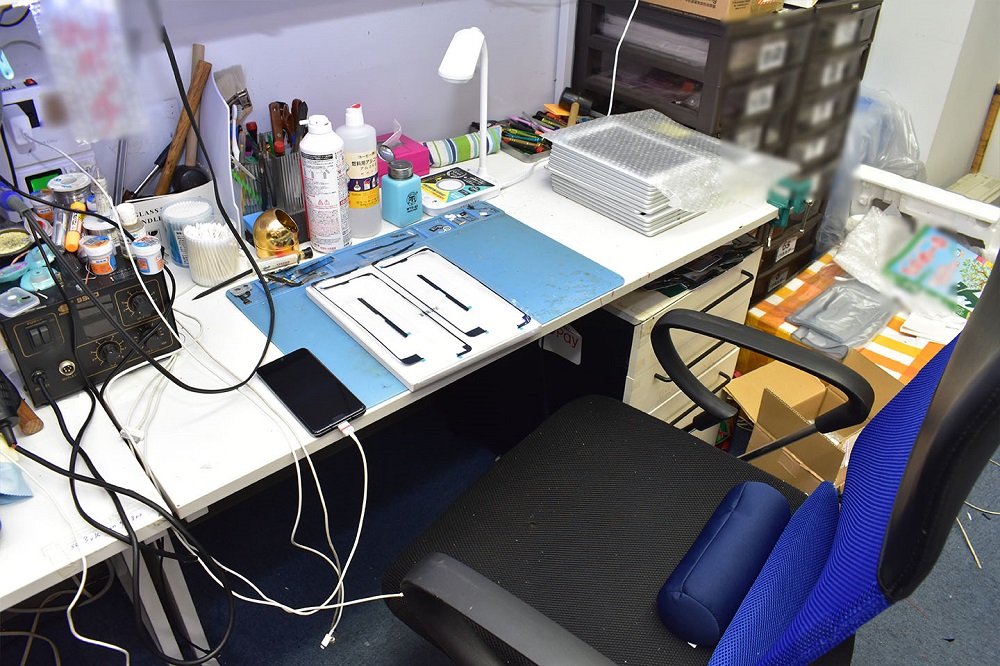 スマートフォンやタブレット端末の修理店です。コンパクトな店舗構成ですが、様々な修理機器が取り揃えられているので、一般の店舗では演出できないようなマニアックな作業場のような雰囲気が演出できるのではないかと思います。