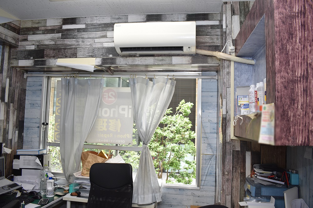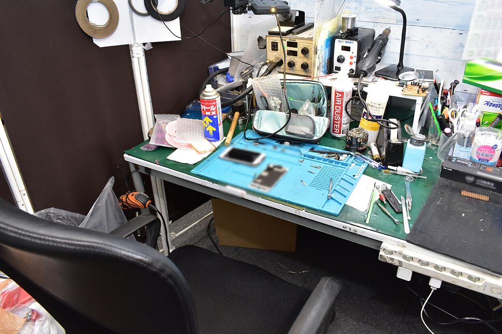 スマートフォンやタブレット端末の修理店です。コンパクトな店舗構成ですが、様々な修理機器が取り揃えられているので、一般の店舗では演出できないようなマニアックな作業場のような雰囲気が演出できるのではないかと思います。