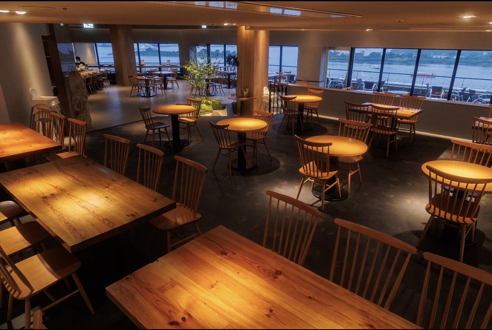 アクアシティの店舗の中で見通しの良さとテラスエリアの広さは随一です。