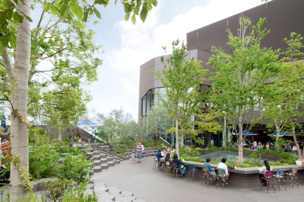 緑に囲まれたオープンテラス「おもはらの森」は、四季が感じられる樹木や50種類以上の野草を配し、原宿に新たな「森」を創出しています。都会的・自然的な撮影どちらもできることが当施設のおすすめポイントです。