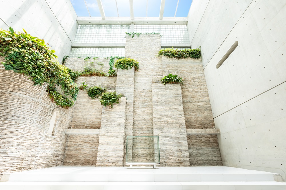 天井高20mあるSky HALLは空が突き抜けて見れるため圧巻です。