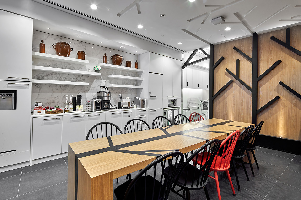 シェアキッチンとダイニングが特徴の、最先端オフィスロケーション。受付カウンター、会議室、ラウンジ等の撮影ご利用可能です。