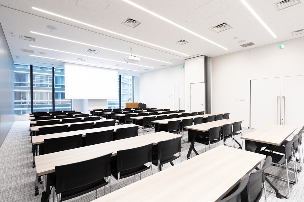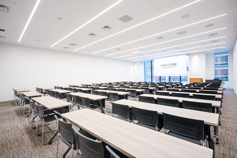 8メートルの天井高を有し、採光豊かな空間に500名以上を収容できる兜町・茅場町エリア最大規模のホールと中小会議室をワンフロアに集約した施設です。