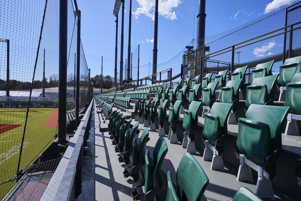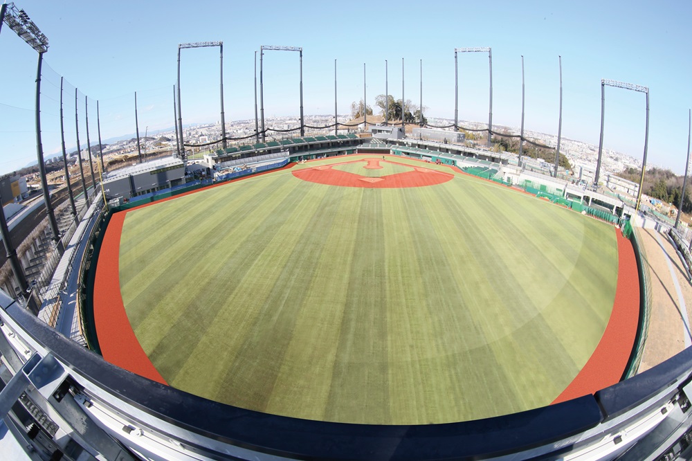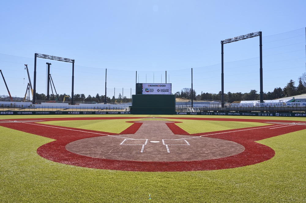 選⼿とファンの距離が近く、グラウンドの芝や⾳響設備にもこだわった先進的なスタジアムです。