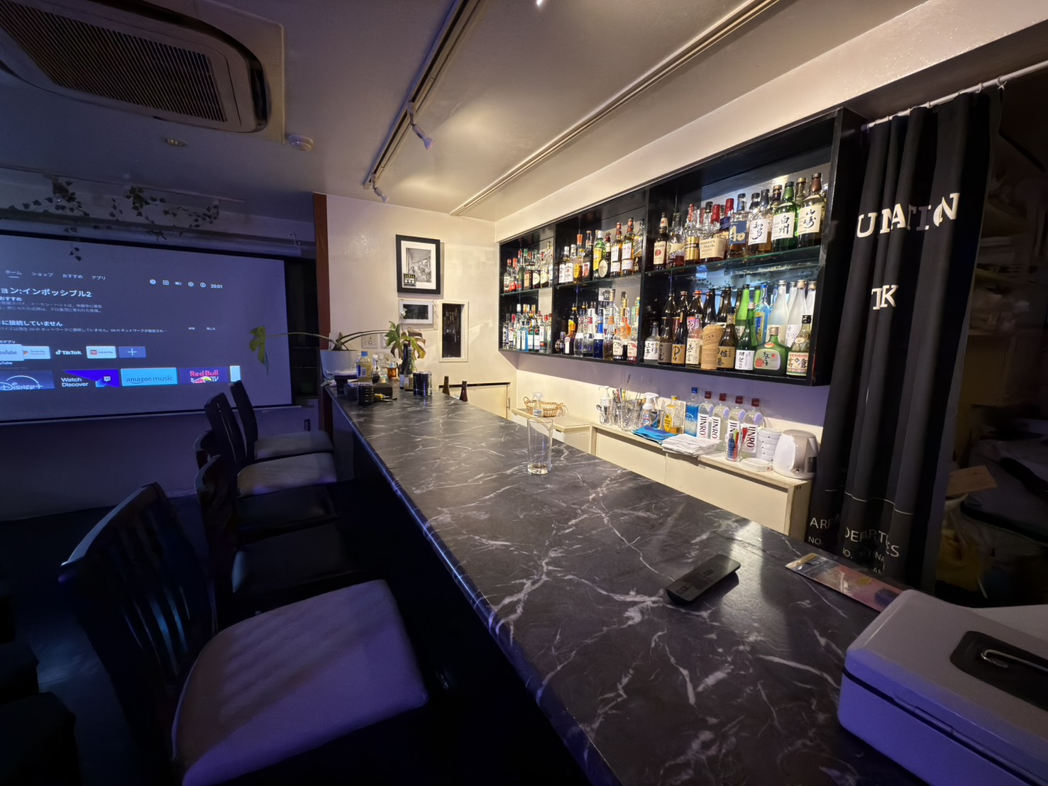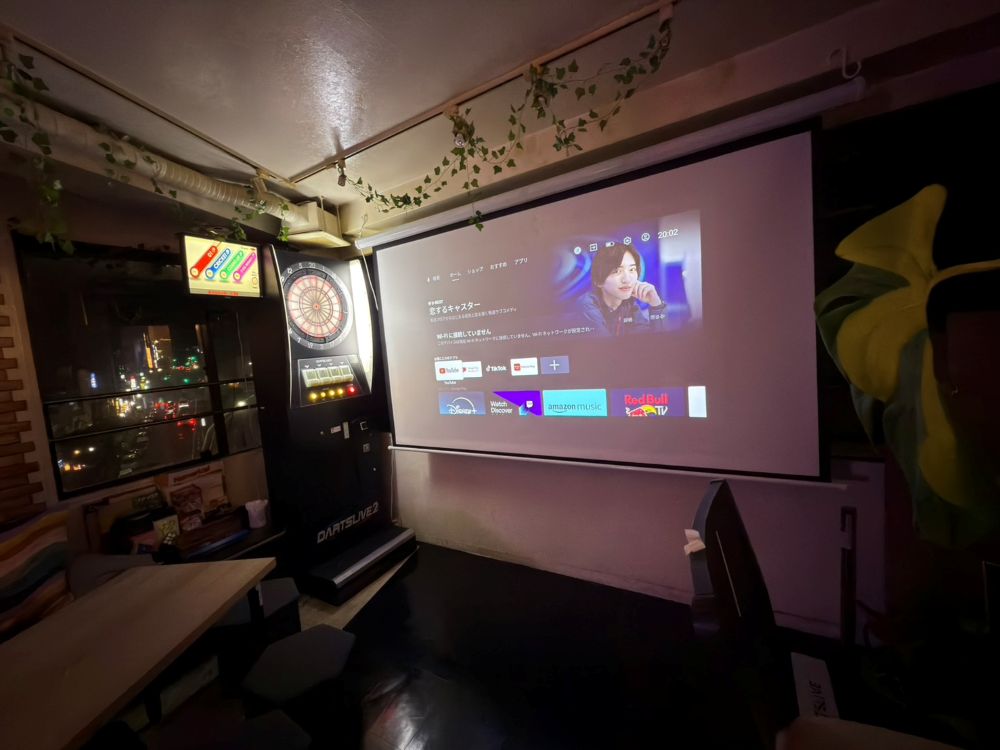 店内にプロジェクターと大型スクリーン、モニターがございますので映像の確認にご利用いただけます。