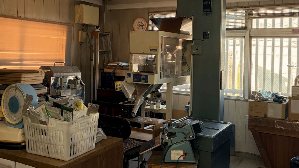 昭和期のほうじ茶焙煎機が現役で稼働しており、