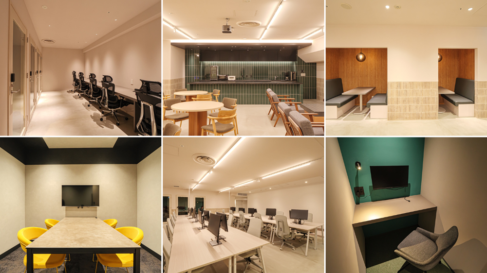 コワーキングスペースはあえて窓を無くしたことで、騒音対策できており、天候に関係ない撮影が可能です。
