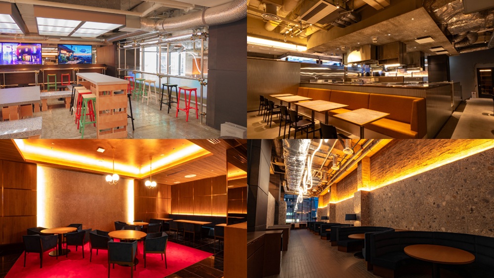 駅近の商業ビル内に位置する、大型シェア型フードホール&コワーキングスペースです。