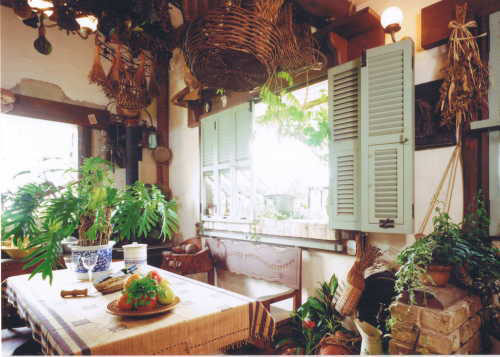 プロヴァンス地方を忠実に再現したモデル住宅「マーガレットの生活」。建材、家具、調度品に至るまでフレンチカントリーデザインで統一されている。外壁には蔦が絡まり、石畳には苔が生した歴史ある佇まい。