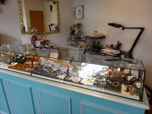 ヨーロッパにある隠れ家的な小さなハンドメイドのアクセサリー&ジュエリーショップ。ガーデニングに彩られた屋外と屋内は狭いですが、可愛い雰囲気です。2面ガラス張りで、外の通りがよく見えます。 仕様:店内)7.5坪ほど、天井)2m50cmほど
