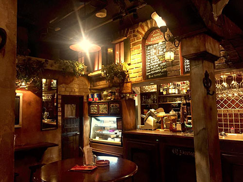 【レストラン・イタリア】 イタリア・ヴェネツィアの路地裏をモチーフとした、かなりお洒落な空間です。朽ちたレンガや古びた壁が、クラシックな雰囲気を醸し出しています。広さはないですが、ほぼ正方形に近い空間ですので、撮影はしやすいと思われます。また一夜アングルによって、異なる雰囲気が出ます。