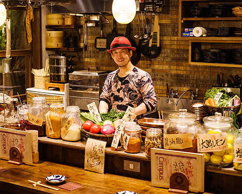 【居酒屋・飲食店】 深川不動尊、富岡八幡宮のすぐ近くで駅から徒歩1分。路地裏にあり、ちょっとした隠れ家的な雰囲気です。 有機野菜たっぷりの農業系居酒屋です。店内は囲炉裏もあり、農家の納屋を思わせる、レトロで、良い意味で雑多な感じです。