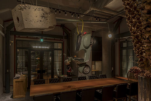 【レストラン】 全国各地から厳選したお肉を備長炭で焼き上げる炭火焼料理のレストランです。店内は5mの天井高の空間に、さまざまな現代アートが大胆にレイアウトされています。 ドラマ撮影のほか、音楽番組やCMなど、ARTがインパクトになる物のロケに向いているかと存じます。