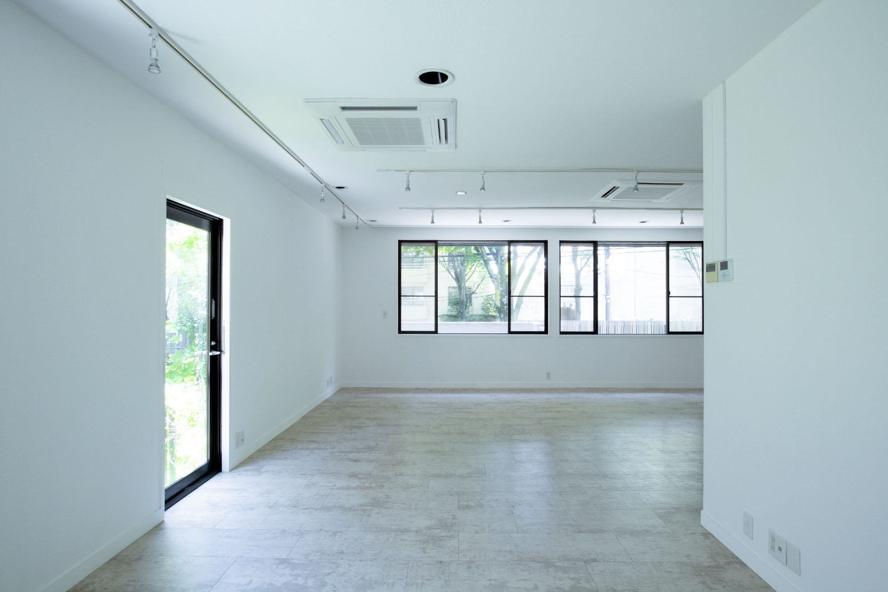 【イベントスペース・一軒家】 代々木上原のケヤキ並木道の前、閑静な住宅街エリアにある、築35年の古民家をリノベーションした一軒家のイベントスペースです。道路に面したガレージから階段を登りきった2F部分は、細かく別れていた部屋をワンフロアにし、天井を抜いた、真っ白い空間です。自然光の豊かな空間で、PRやポップアップ、展示会、スクールやワークショップなど多方面な用途でお使いいただけます。 期間限定のご案内です。