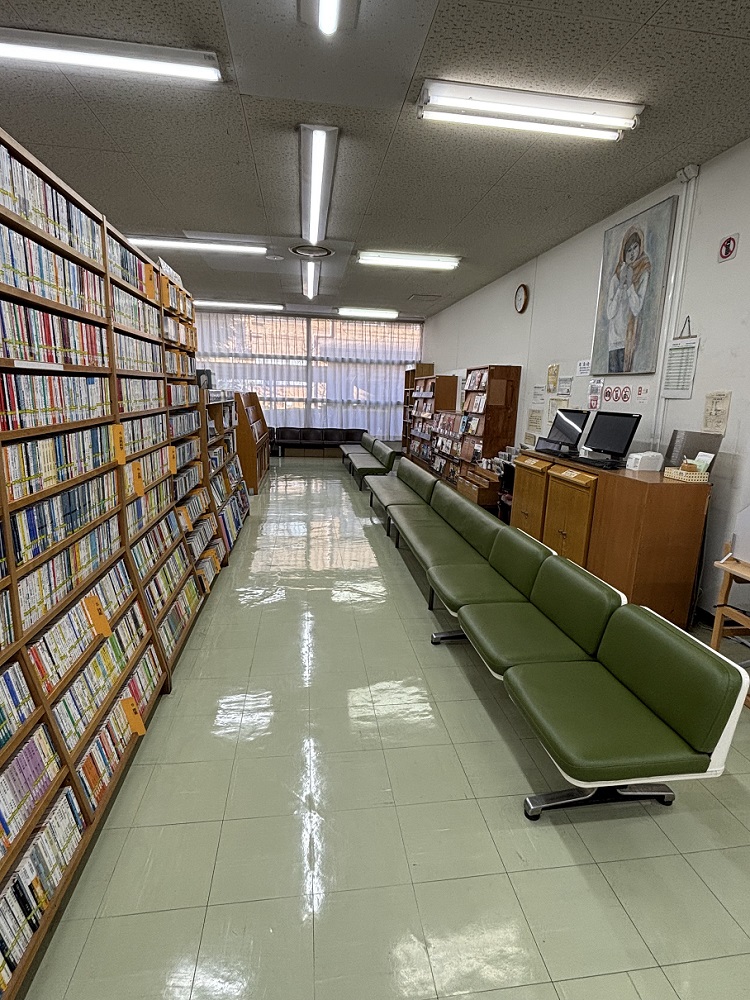 所蔵冊数約10万4千冊,昭和53年に市内4番目の図書館として開館しました。 2階はもとまち公民館です。