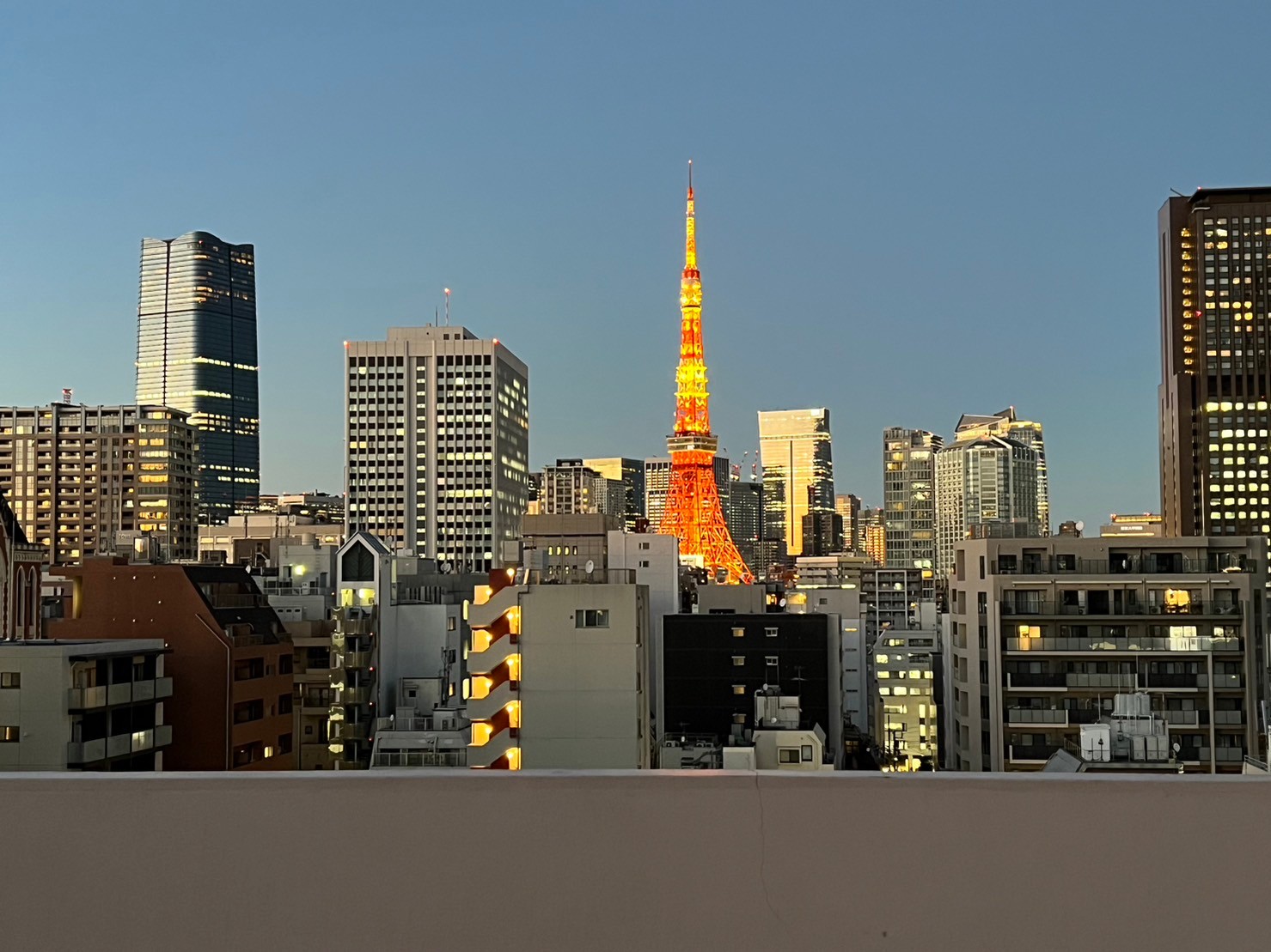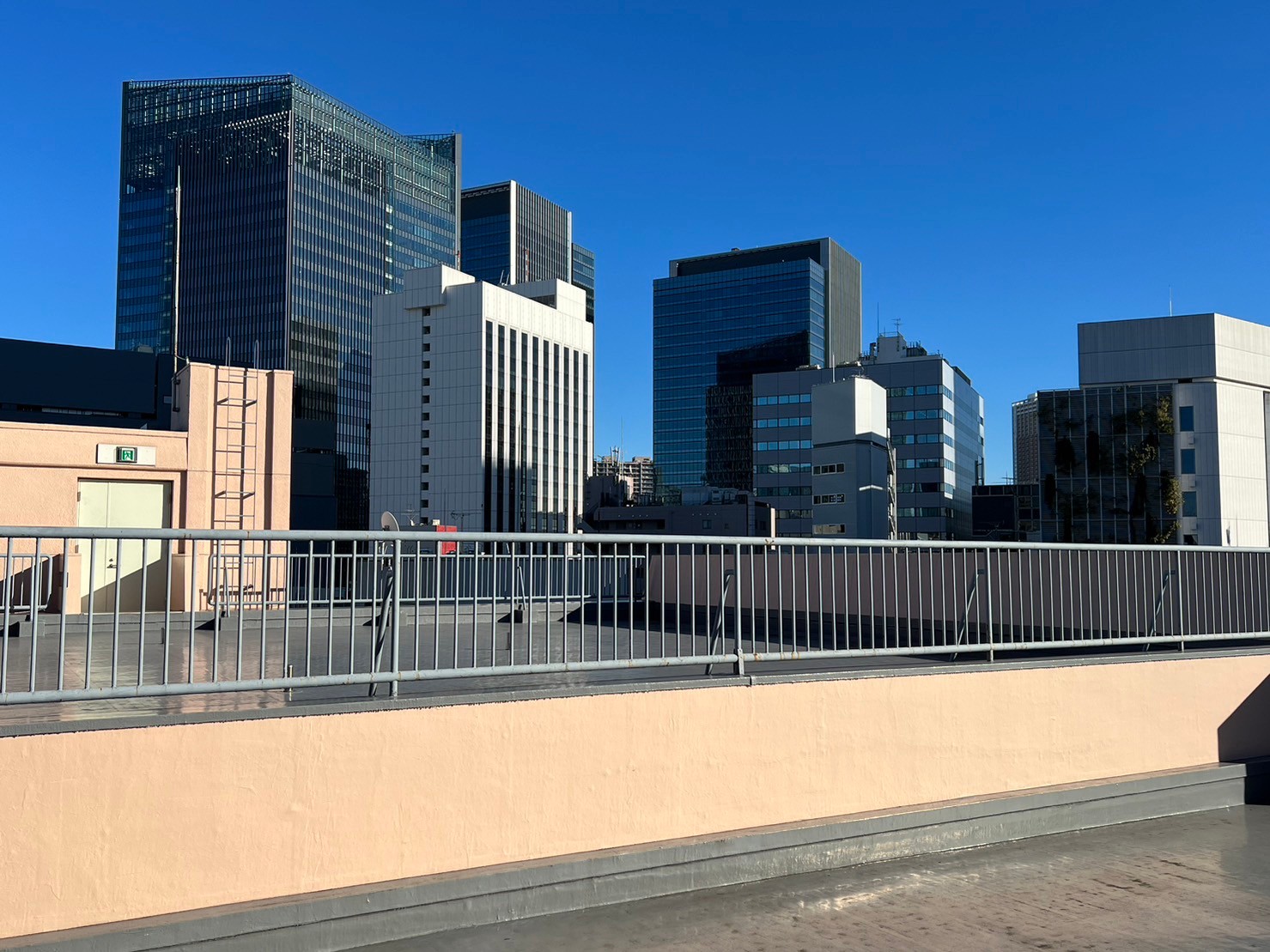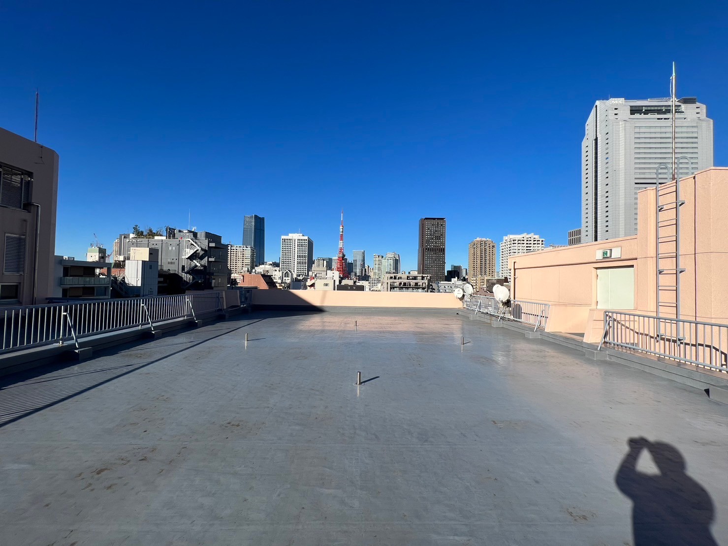 芝オフィスビル屋上 東京タワーと都会のビル群が美しく並んで見え、理想的な東京のイメージが目の前に広がります。アーバンな印象の映像撮影には最適です。