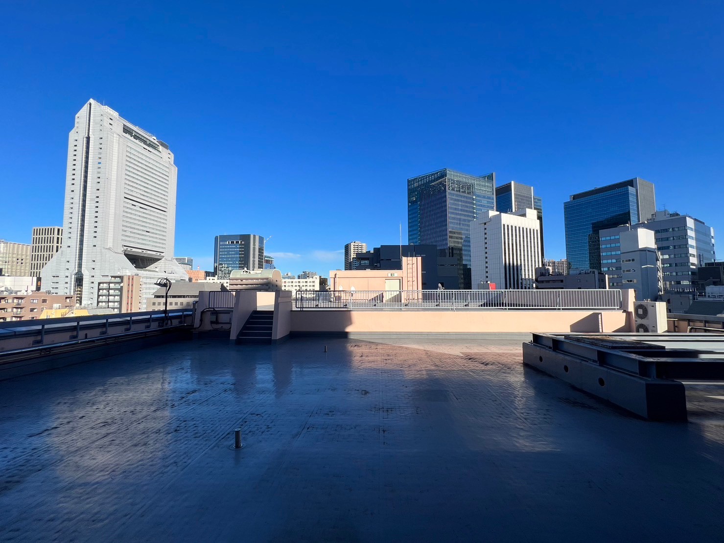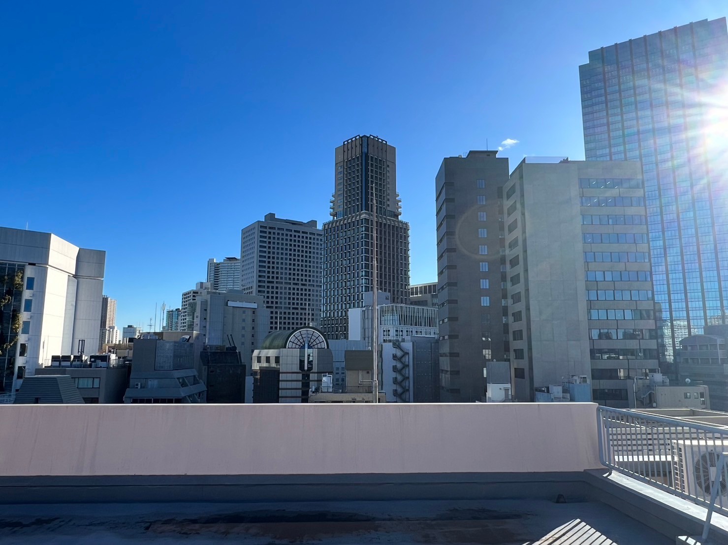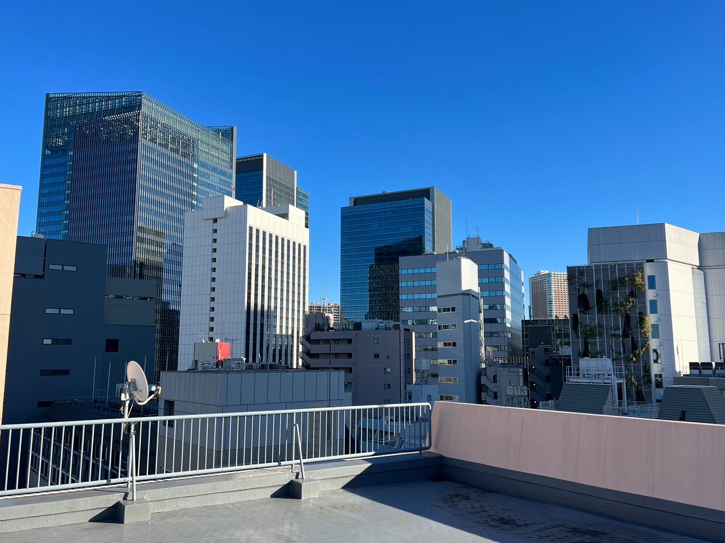 芝オフィスビル屋上 東京タワーと都会のビル群が美しく並んで見え、理想的な東京のイメージが目の前に広がります。アーバンな印象の映像撮影には最適です。