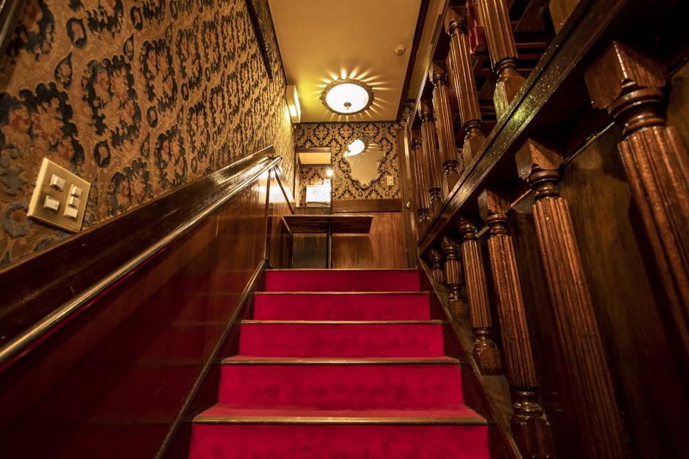 店内階段 赤絨毯のクラシカルな店内階段があります。