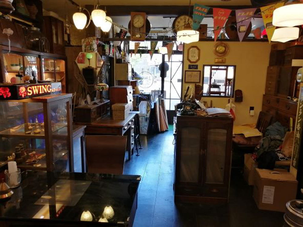 【骨董店・喫茶】 昭和レトロな雰囲気のある骨董店に喫茶スペースを併設したお店です。 個性的なお店の作りが絵になります。