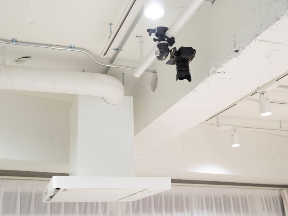 キッチン上に俯瞰で撮影できるポールがあります。