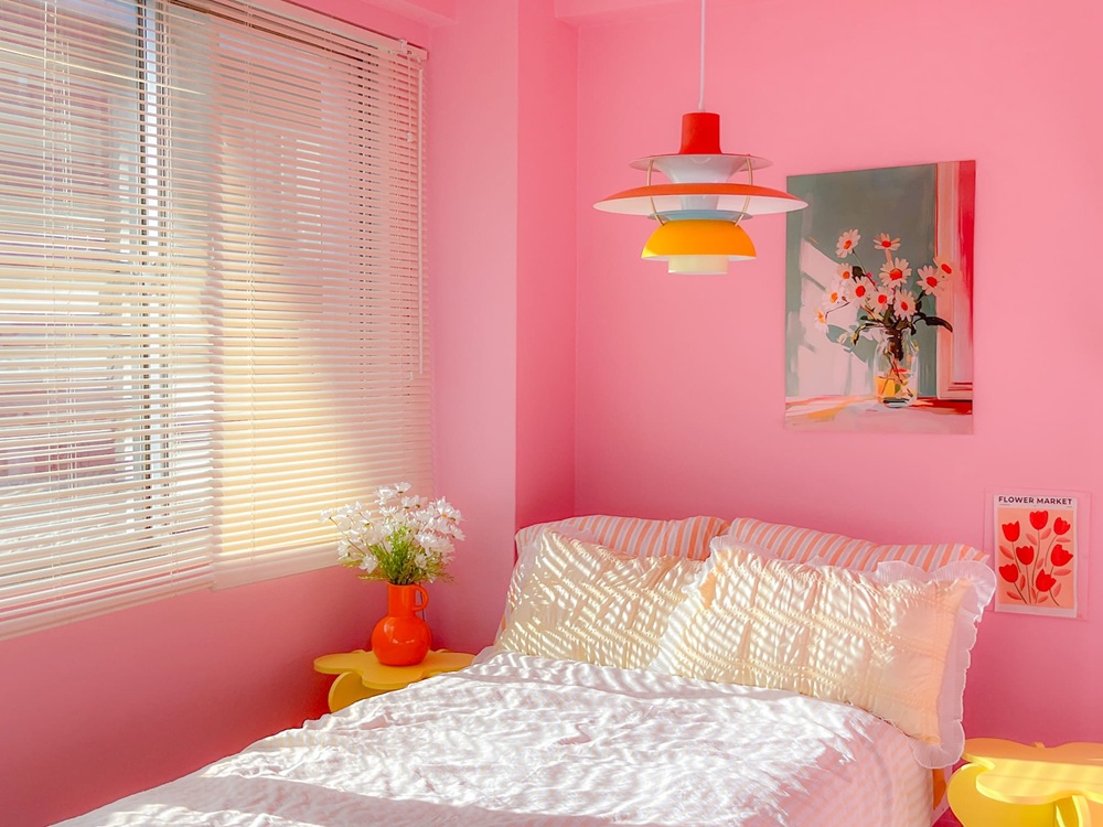 インテリアは、ふくらみのあるデザイン家具や、ツルッとしたプラスチック製のおもちゃみたいな家具、スケルトンの電化製品、ドラムセットまで幅広くラインナップ。