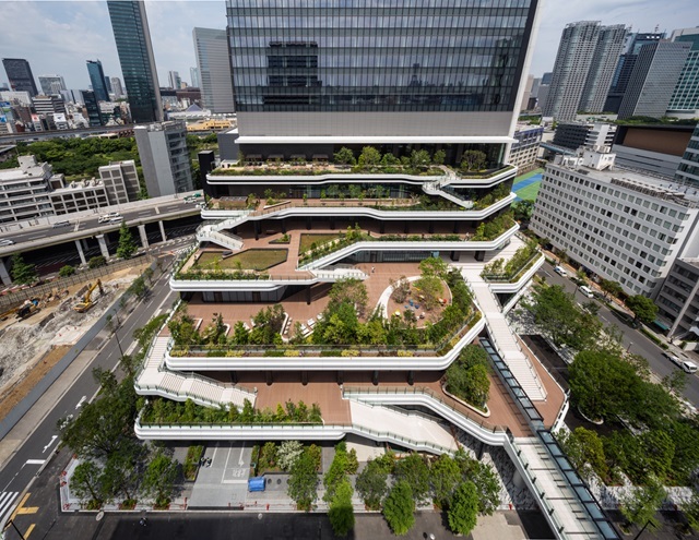 JR浜松町駅直結の広大なデッキがある、緑豊かな物件です。