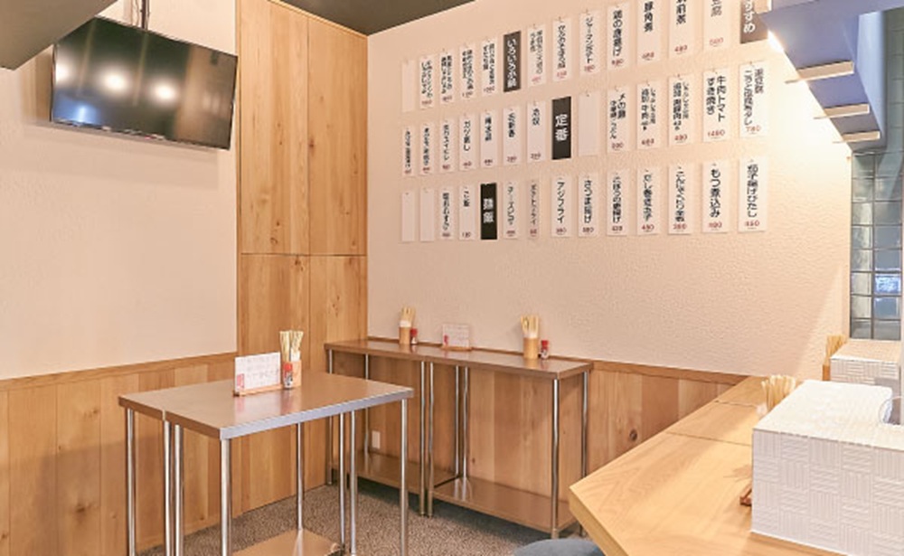 奥には着席スペース、表にはスタンディングスペースと使い分けができる居酒屋。