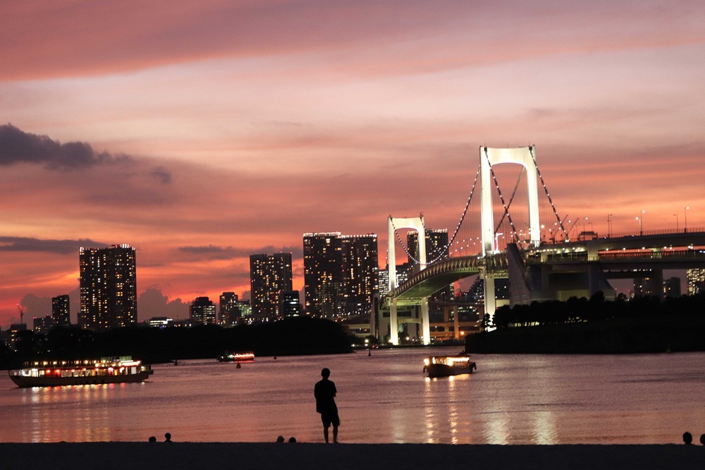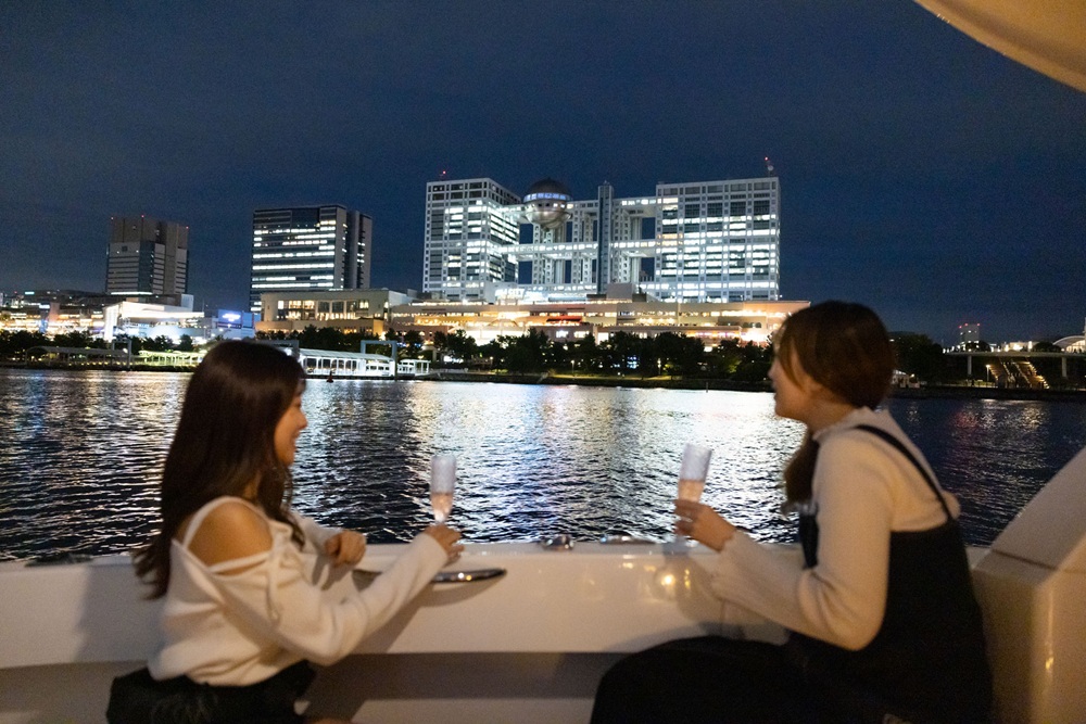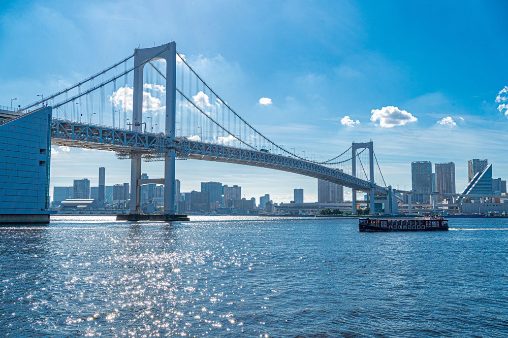 レインボーブリッジを下から見上げ、お台場海浜公園では自由の女神像や有名なテレビ局本社、東京タワーや高層ビル群などのランドマークを海から楽しめます。