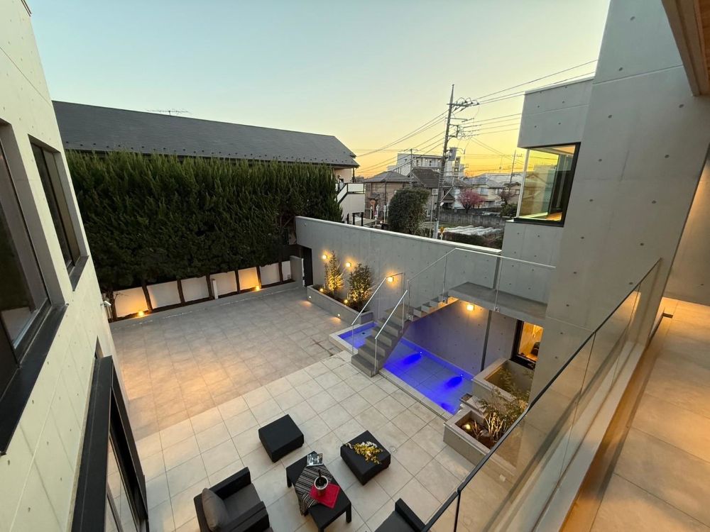 中庭の広い空間をはじめ、邸宅らしい上品な外観は、私邸シーンや生活描写、ガレージを活用したガジェットシーンなど、さまざまな演出に対応できます。