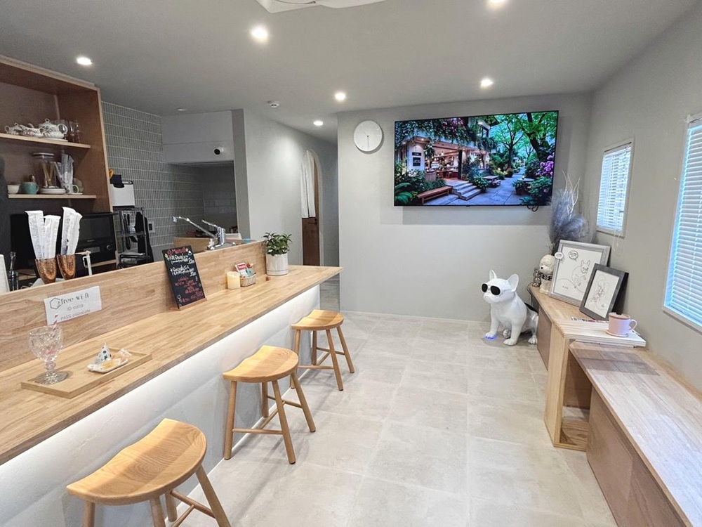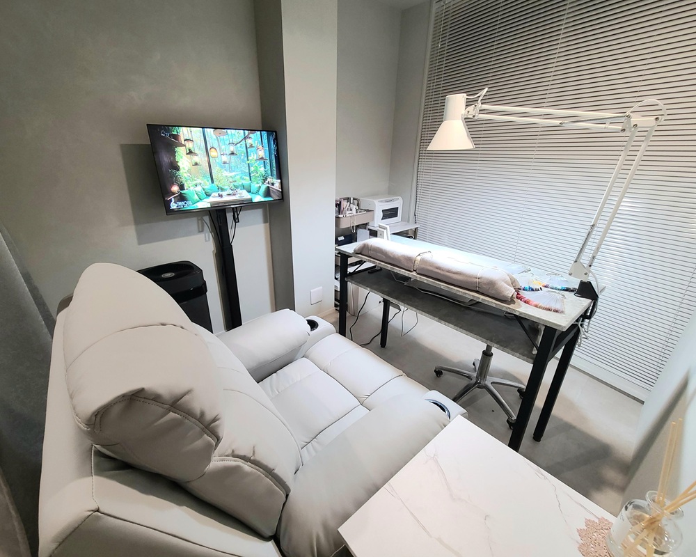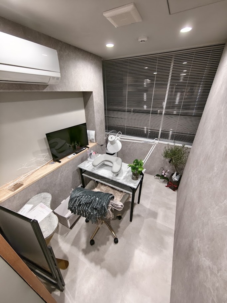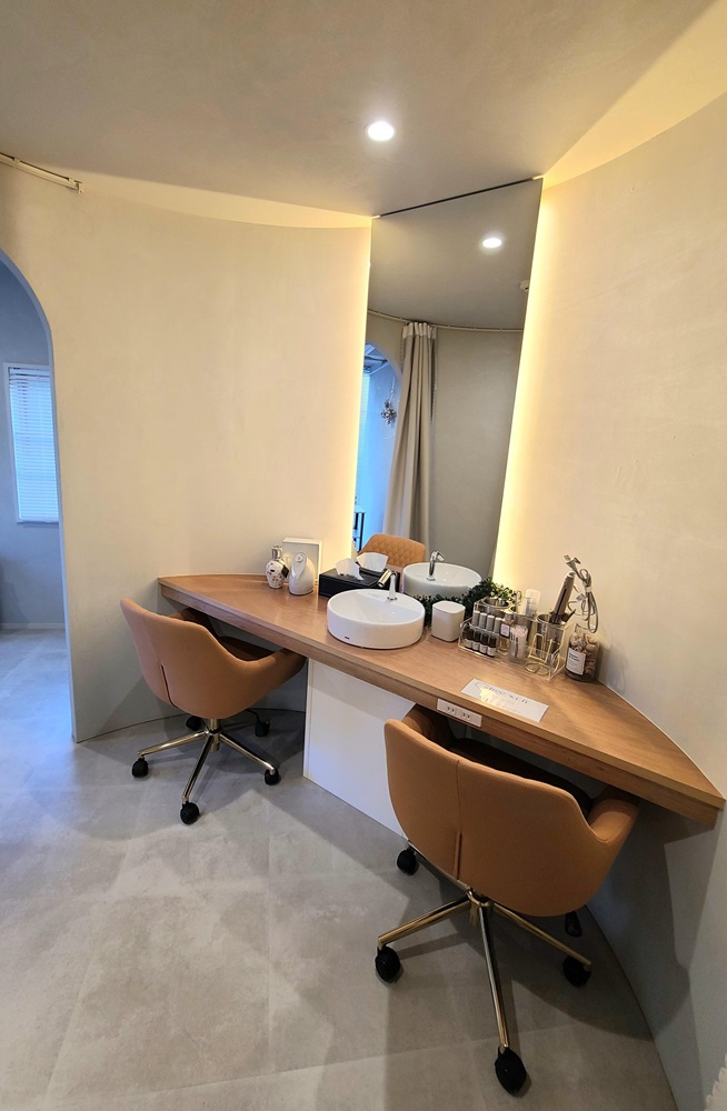 ネイルサロン、アイラッシュサロン、カフェ(カウンター)が一体となった施設です。