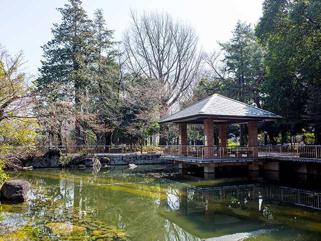 The gate where Sakurako Jinno (Nanako Matsushima) and Osuke Nakahara (Shinichi Tsutsumi) had climbed over together during their stroll is located in this “Sanshi no Mori Park” in Suginami-ku in the episode 2 of the drama "Yamato Nadeshiko - Perfect Woman" (2000). The park previously was a site to Sericultural Experiment Station, and the bricked main gate is the reminiscent of those days.