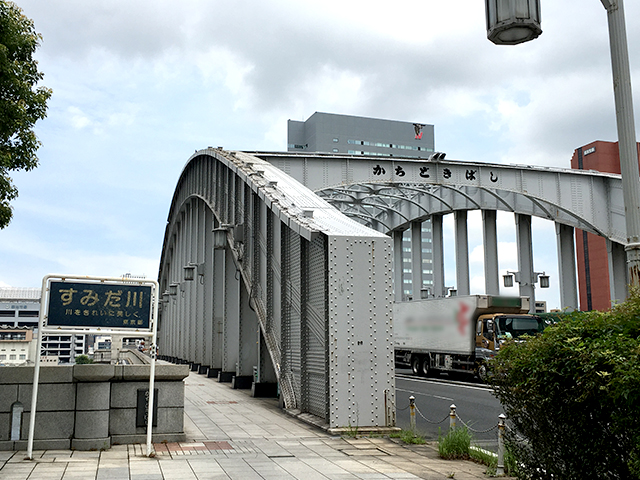 映画『ゴジラ』(1954)に登場するのが、中央区にあるここ「勝どき橋」です。国会議事堂を破壊したゴジラが、上野方面へと移動した後に隅田川を下り、東京湾へ戻る途中でひっくり返すようにこの勝どき橋を破壊しました。1940年に完成した勝どき橋は、国内でも数少ない橋の中央が開閉する跳開橋。1970年11月29日の開閉を最後に、現在は開かずの橋になっていますが、2007年には国の重要文化財に指定されました。ちなみに、作中のラジオ中継ではゴジラの移動進路は「上野から浅草に抜け、隅田川を南下」と放送されますが、音声中継のみで上野浅草方面の破壊シーンはありません。