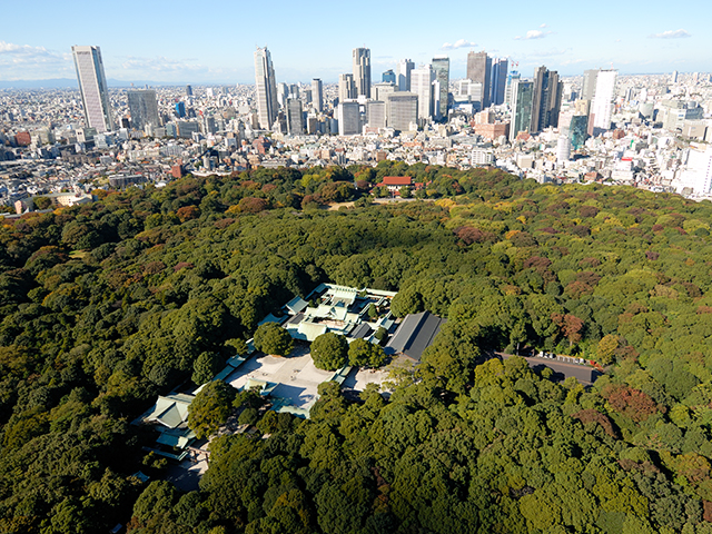 渋谷区にある、明治天皇と皇后の昭憲皇太后を祀る神社。初詣では例年日本一の参拝者数を集める神社として知られ、年間を通じては国民の憩いの場として、また、東京を代表する観光地のひとつとして多くの人々が訪れます。約70万平方メートルある広大な境内には、パワースポットとして有名な「清正井」、6月に見頃を迎える美しい「御苑の花菖蒲」、縁結びや夫婦円満のご利益があると言われる「夫婦楠」など、他にも数々の見どころがあります。ここが東京であることを忘れさせてくれる緑豊かな森の中で、神聖さと癒しに満ちたひとときを過ごしてみてはいかがでしょうか。