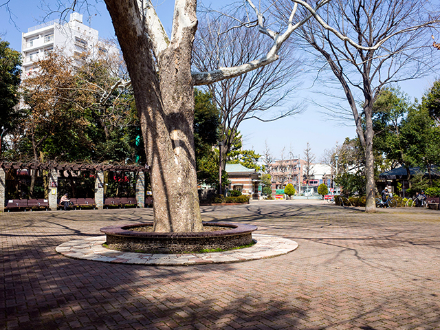 ドラマ『やまとなでしこ』(2000)第2話で神野桜子(松嶋菜々子)と中原欧介(堤真一)が“道草しよう”と一緒に乗り越えた門が、杉並区にあるここ「蚕糸の森公園」にあります。かつて公園になる前はこの地には蚕糸試験場があり、現在はこの煉瓦づくりの正門がその名残をとどめています。