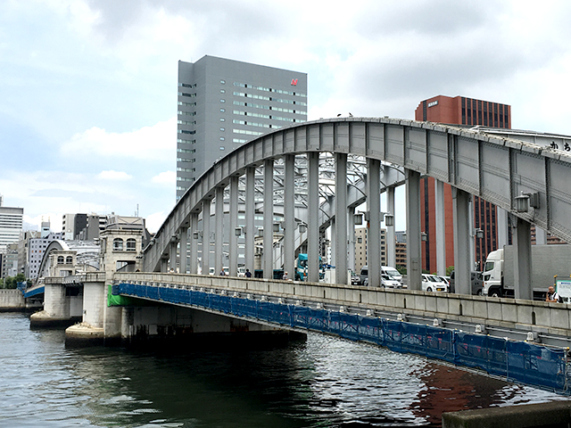 映画『3月のライオン』(2017)に登場するのが、中央区にある「中央大橋」。桐山零(神木隆之介)が住む六月町と川本家が住む三月町をつなぐ橋として登場します。隅田川に架かる橋で、実際は中央区の新川と佃を結んでいます。兜(かぶと)をモチーフにした主塔と欄干のデザインが印象的。「斜張橋」という構造で、幾本ものケーブルが主塔からピンとまっすぐに伸びる堂々とした姿は、夜のライトアップでさらに美しさを増します。高層ビルやマンションが立ち並ぶ、周囲の近代的な街並みと調和した風景を、水上バスから眺めるのもおすすめです。