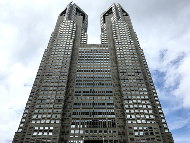 映画『ゴジラ』(1984)で自衛隊の対ゴジラ兵器・スーパーXがゴジラを迎え撃ち、その戦いによって西新宿一帯は焼け野原となり、周囲の高層ビルもゴジラによって押し倒されてしまいます。そして、続編の『ゴジラvsキングギドラ』(1991)ではついに、西新宿に建てられたばかりのここ「東京都庁舎」も犠牲になります。東京都庁舎は、世界的建築家の丹下健三による設計・デザインで、1991年当時日本一の高さを誇りました。現在も、地上202メートルからの眺めを楽しめる展望室をはじめ、東京の観光名所のひとつとして親しまれています。