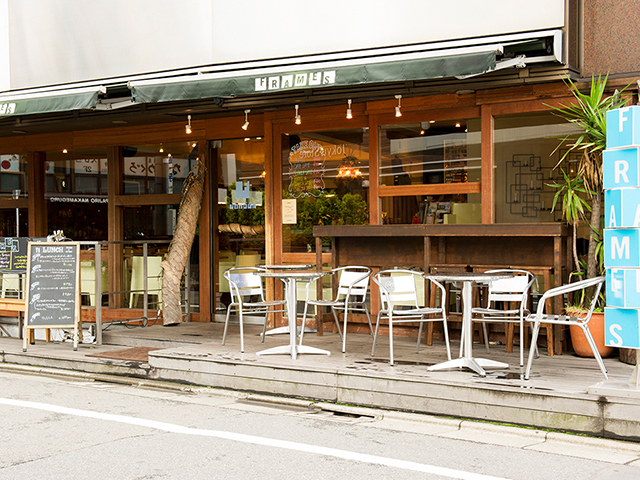 映画『怒り』(2016)で登場したカフェが、目黒区にあるここ「FRAMES中目黒店」です。このカフェでは、2つのシーンの撮影が行われました。大西直人(綾野剛)と薫(高畑充希)が店内で親しげに話している様子を、藤田優馬(妻夫木聡)が外から偶然見かけて2人の関係に不信感を覚えるシーン。そして、その後日に優馬が薫から真相を知らされるという重要なシーンです。FRAMESは「YOUR OASIS IN LIFE」をコンセプトにした、広々としたスペースが魅力的なカフェ。ランチタイムはフリードリンク付きの日替りランチ、ディナータイムはオープン当時から変わらない定番メニューから季節を取り入れた新メニューまで充実。パティシエが作る自家製デザートやバーテンダーが作るドリンクメニューも多彩です。全100席の中には、ソファ席やテラス席も用意。平日の仕事帰りや休日のひととき、都会のオアシスとして、訪れる人の気分を潤してくれます。