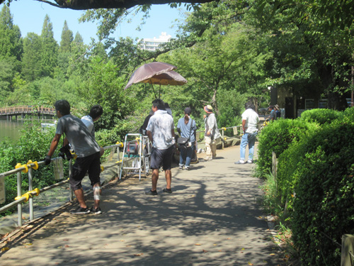 井の頭恩賜公園利用者や商店街の皆様等、多くの方の支援とご協力を得て、撮影を行うことができました。特に、西部公園緑地事務所の皆様には、直前に撮影場所の追加要望に応じていただくなど、多大なご協力を頂きました。ロケ当日は雷雨が予報されていましたが、撮影隊のスピーディーな対応により、降雨前に無事に撮影を終了することができました。