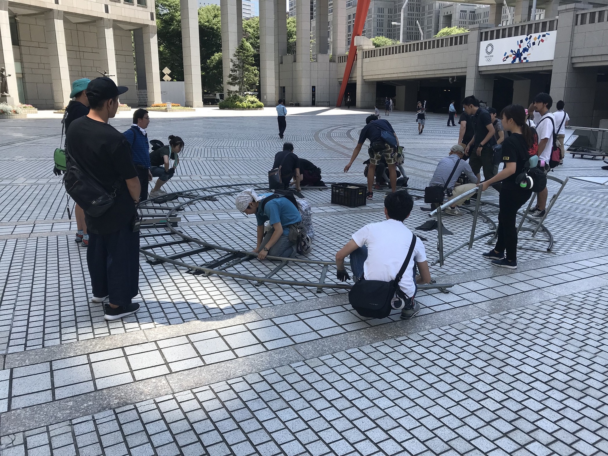 都庁の敷地内である都民広場で玉城ティナさんと多くのエキストラが出演するシーンの撮影が行われました。