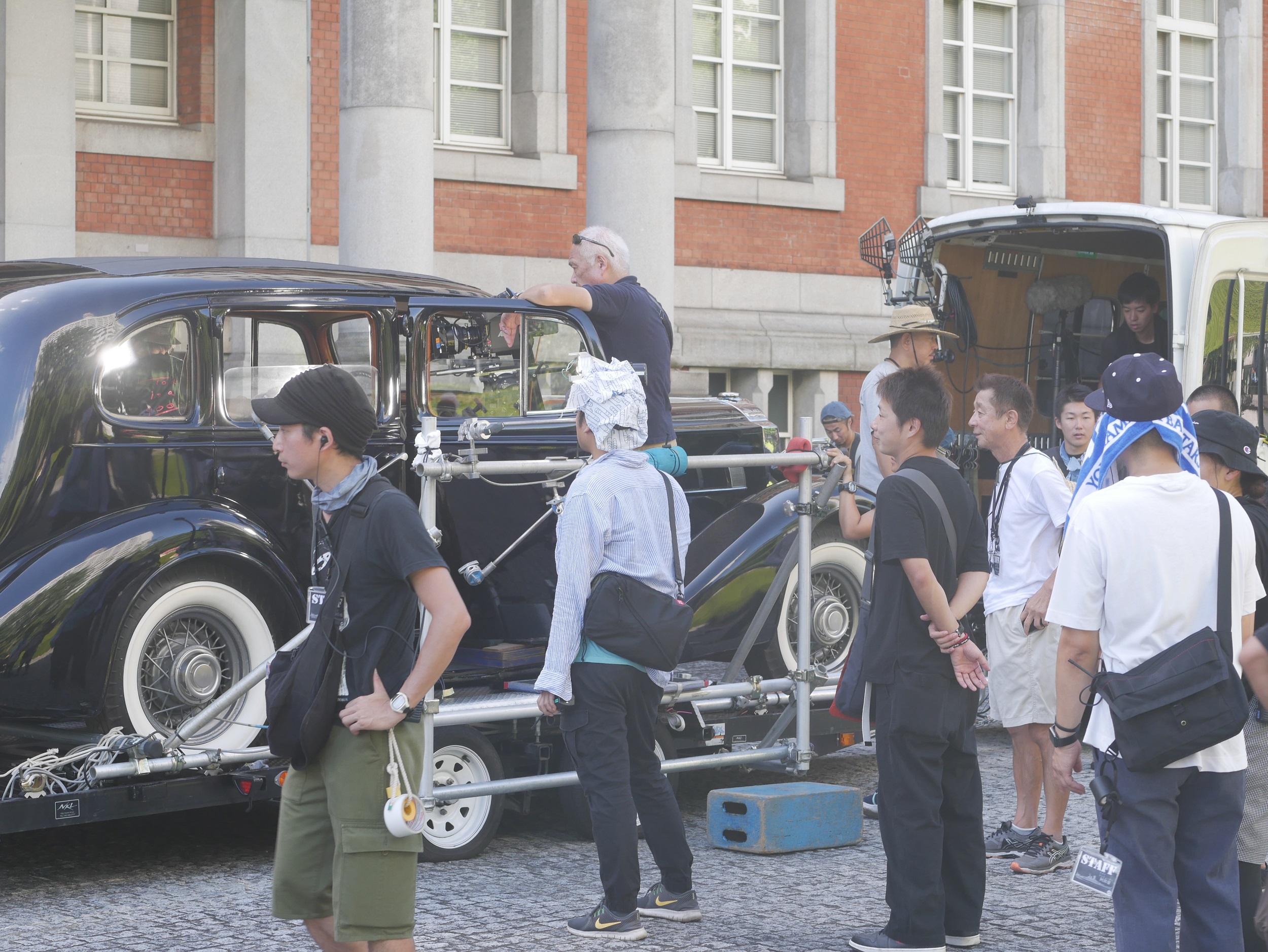 赤れんが棟の外には、劇用車のオースチンやパッカードが複数並び、普段では滅多に見られない光景が広がる撮影となりました。