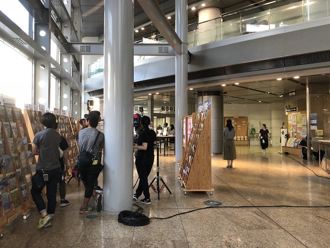 第3話の2つのシーンを東京しごとセンター内、受付と総合情報センターで撮影しました。美術スタッフによりあっという間に館内が準備され、主演の鈴木保奈美さんが登場!休館日にも関わらず、施設の方たちに立会のご協力をいただきスムーズに撮影が終わりました。
