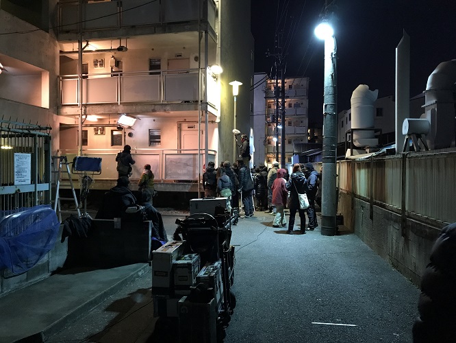 物語のキーとなる重要なシーンの撮影が行われました。また、団地の自治会の方も撮影にご協力いただきました。