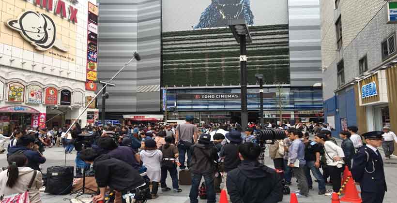 多くの人が集まる新宿・歌舞伎町の中心部で、エキストラ400人超の大規模な撮影が行われました。