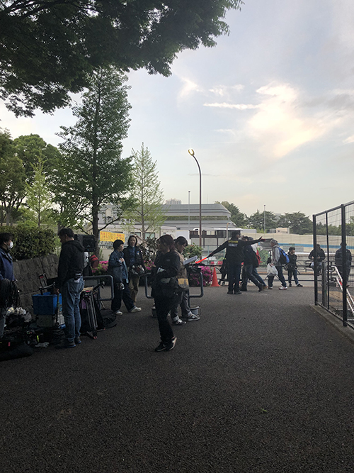 第三話のワンシーンを、「東京体育館」北側の「外苑橋」周辺で撮影しました。主演の菜々緒さん、佐藤さんが登場!夜間に行われた、外苑橋の立体構造と東京体育館周囲の石垣を利用したロケでは、東京体育館と原宿警察署に特別の計らいをいただき、また多くの外苑ランナーの皆さんに見守られながら、無事に楽しく終えることができました!